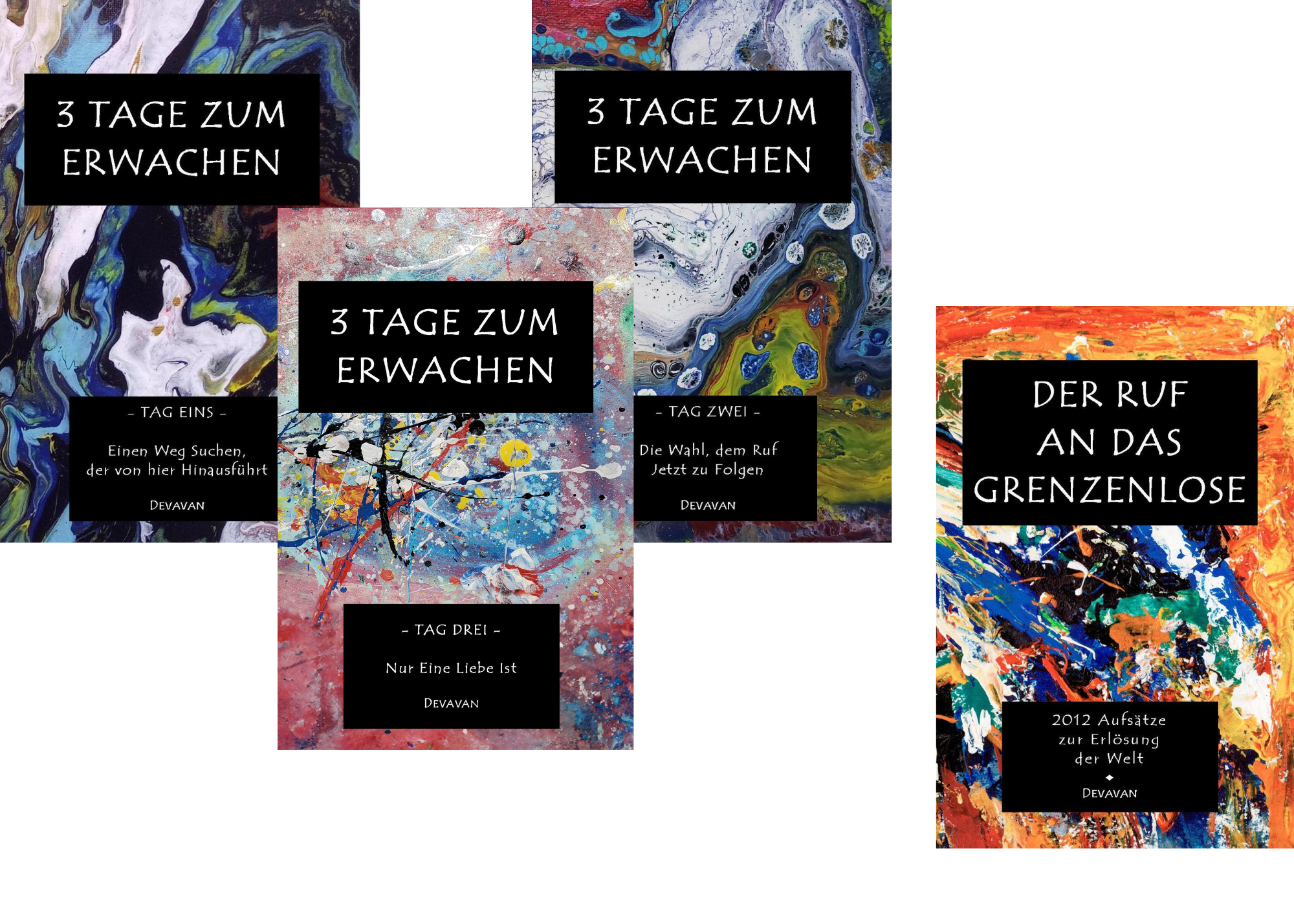 ◊ ◊ ◊ ©2022, 2023 & 2026 bei Devavan, Herausgegeben von: Divine Man Publishing, Titelbilder: “Spiritual”, “Lichtwesen” & “Liebe in Dir Selbst” von Devavan ◊ ◊ ◊ Die Serie “Divine Man – 3 Tage zum Erwachen”, Band I (Buch 1 von 3) Tag Eins – Einen Weg Suchen, der von hier Hinausführt, Band II (Buch 2 von 3) Tag Zwei – Die Wahl, dem Ruf jetzt zu Folgen und – demnächst NEU – Band III (Buch 3 von 3) Tag Drei – Nur Eine Liebe Ist sind über Amazon veröffentlicht und als Taschenbuch (Paperback – 240 bzw. 252 Seiten, Tag…