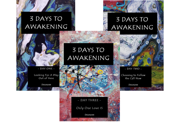 The series “Divine Man – 3 Days To Awakening” with Volume I (Book 1 of 3) Day One – Looking for a Way out of Here, Volume II (Book 2 of 3) Day Two – Choosing to Follow the Call Now and the JUST PUBLISHED Volume III (Book 3 of 3) Day Three – Only One Love IS are available on Amazon in form of a Kindle eBook and in book format as a Paperback.