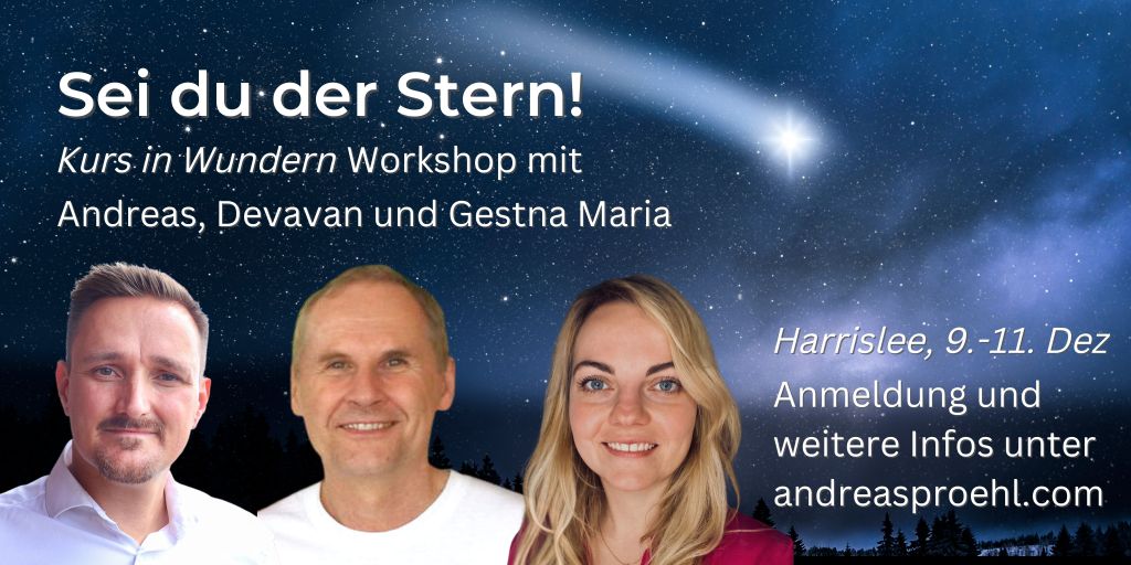 Die Einladung ist, deine Vorweihnachtszeit mit Ein Kurs in Wundern mit deinen Brüdern im LICHT in Flensburg – Harrislee zu verbringen. Titel: „Sei du der Stern“ — 9.-11. Dezember 2022: Willkommen und Tschüss!