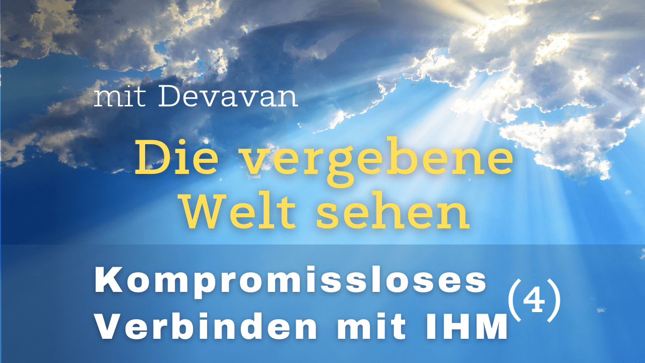 In dieser Episode 4 von “Kompromissloses Verbinden mit IHM” dieser neuen Serie 2 (als Weiterführung von “Mit IHM Beleuchten”) sehen wir uns genauer an, was die Lehre von Christus Jesus in Zusammenhang mit dem Sehen der Vergebenen Welt ist, die Seine SCHAU in den Vordergrund bringt, und all das, was des Körper´s Augen an vergangenen Bedeutungen reflektiert, zur Auflösung, zum Verschwinden erlaubt. Wir teilen einige Beispiele diesbezüglich, die dir einen praktischen Bezug zu diesem neuen SEHEN eröffnen können. ◊