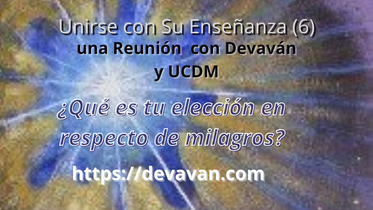 Este tema para la Reunión al 19 de Marzo 2024 refleja en contenido la publicación previa en YouTube “Colapsando tiempo-espacio en Su Presencia ~ con Devaván” en una Sesión organizado de UCDM – Universal (del 19 de Febrero 2021) — para hacer una énfasis entre los minutos 14:50 hasta 37:00, pero también del comienzo hasta el fin.