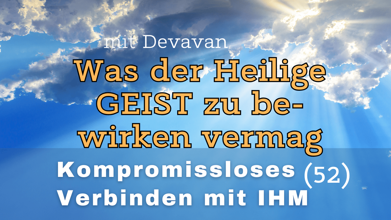 In dieser Episode 52 von “Kompromissloses Verbinden mit IHM” dieser neuen Serie 2 (als Weiterführung von “Mit IHM Beleuchten”) sehen wir uns genauer an, was uns CHRISTUS Jesus in Bezug auf unsere Verwendung des Heiligen GEISTES anbietet. Wenn wir unseren Weg nach HAUSE ausgerichtet haben, und von Situation zu Situation lernen, den Trauminhalten nicht mehr länger Wert aus der Vergangenheit zu geben, dann zeigt ER uns, wie alle Träume im Licht der Erkenntnis aufgelöst werden und es stimmt, dass die wahrgenommene Welt keine eigenständige Existenz hat.