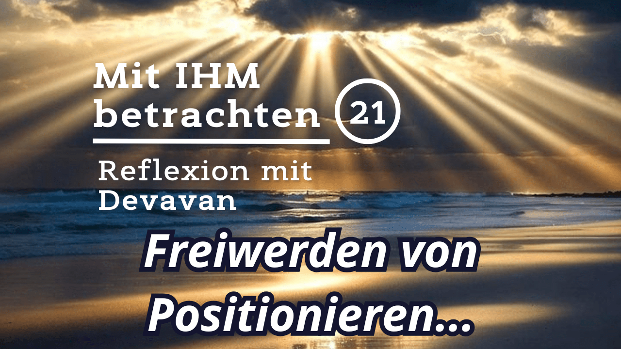In dieser Episode 21 von “Mit IHM Betrachten” dieser neuen Serie 3 (als Weiterführung von “Kompromissloses Verbinden mit IHM” und “Mit IHM Beleuchten”) sehen wir uns genauer an, was uns CHRISTUS Jesus in Bezug auf Bilder, die als Erlösungspotenzial Bedeutung gegeben und beibehalten werden, lehrt, und wie wir sie benutzt haben, um uns in den Gegensätzen zu positionieren. Da jedes Traumbild der Trennung uns den Grolls im eigenen Geist aufzeigt, bedarf es ein Bewusstsein, dass diesen Köder des Egos bewusst ablehnt und statt dessen die Wahrheit sucht und sich daran erinnert.