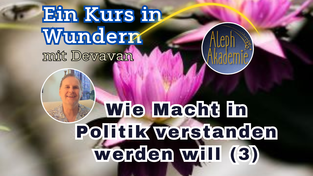 In dieser Aleph-Session zum neuen Monats-Thema, mit dieser neuen Serie “Politik, ein nützlicher Wegweiser?”, teilen wir, was es mit dieser Idee in Bezug auf unser Verständnis über diese essentielle Erkenntnis im Menschengeist auf sich hat, welche Führung uns hier Christus Jesus anbietet, die wir als eine Klarheit darüber in uns selbst finden und nutzen können. Wir sehen uns Aspekte an, die uns helfen sollen, zwischen Macht und Schwäche zu unterscheiden, und Doppelkonzepte, wie “ohnmächtige Macht”, “haßerfüllte Liebe” oder “lebendiger Tod” nicht mehr länger zu akzeptieren. Sie sind Teil unserer Vorstellungen von Politik in Bezug auf unsere Glaubenssätze und Doktrinen, und sind da und hilfreich, um uns zu erinnern, dass alles, was als “persönlich” gesehen, gehalten und verteidigt wird, auch “politisch” ist und zur Politik des Hierseins am Weg raus von “hier” als ein Wegweiser dient und genutzt werden kann.
