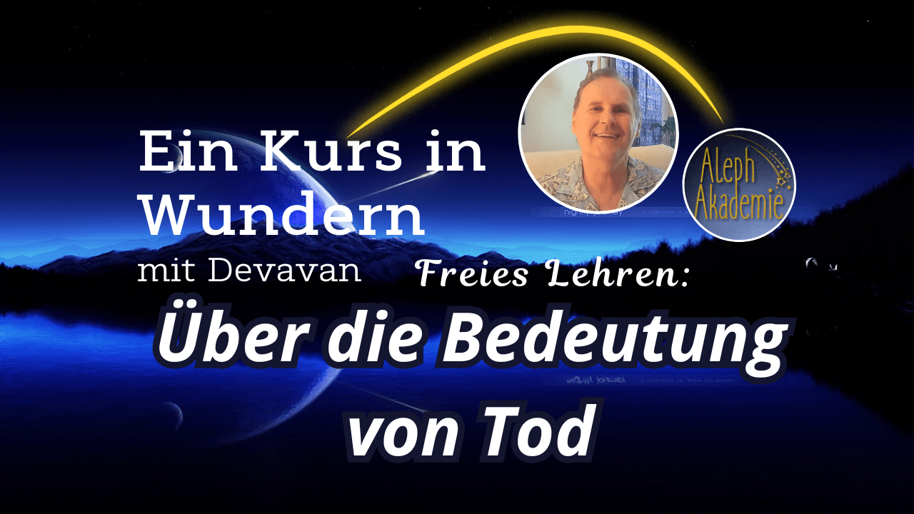 In dieser Aleph-Session teilen wir in einem Freien Thema unser Denken über die Bedeutung von Tod und welche Ego-Konzepte sich noch im Geist zeigen. Wir sind bereit anzuerkennen, dass Leben nichts mit Tod zu tun hat und nicht im Gegensatz stehen. Und mit der Erkenntnis, dass das Konzept des Todes auf Illusionen basiert, wollen wir auch die Geistesschulung einladen, umuns zu erinnern, dass diese Illusionen nichts sind und damit das Konzept von Tod auf nichts wirklichem beruht. Wir sehen uns zum Thema “Tod” verschiedenste Aspekte mit Beispielen an, die die Lehre von Jesus Christus in “Kapitel 19-IV” von Ein Kurrs in Wundern und in den Ergänzungen der “Besonderen Botschaften” untermauern. ◊