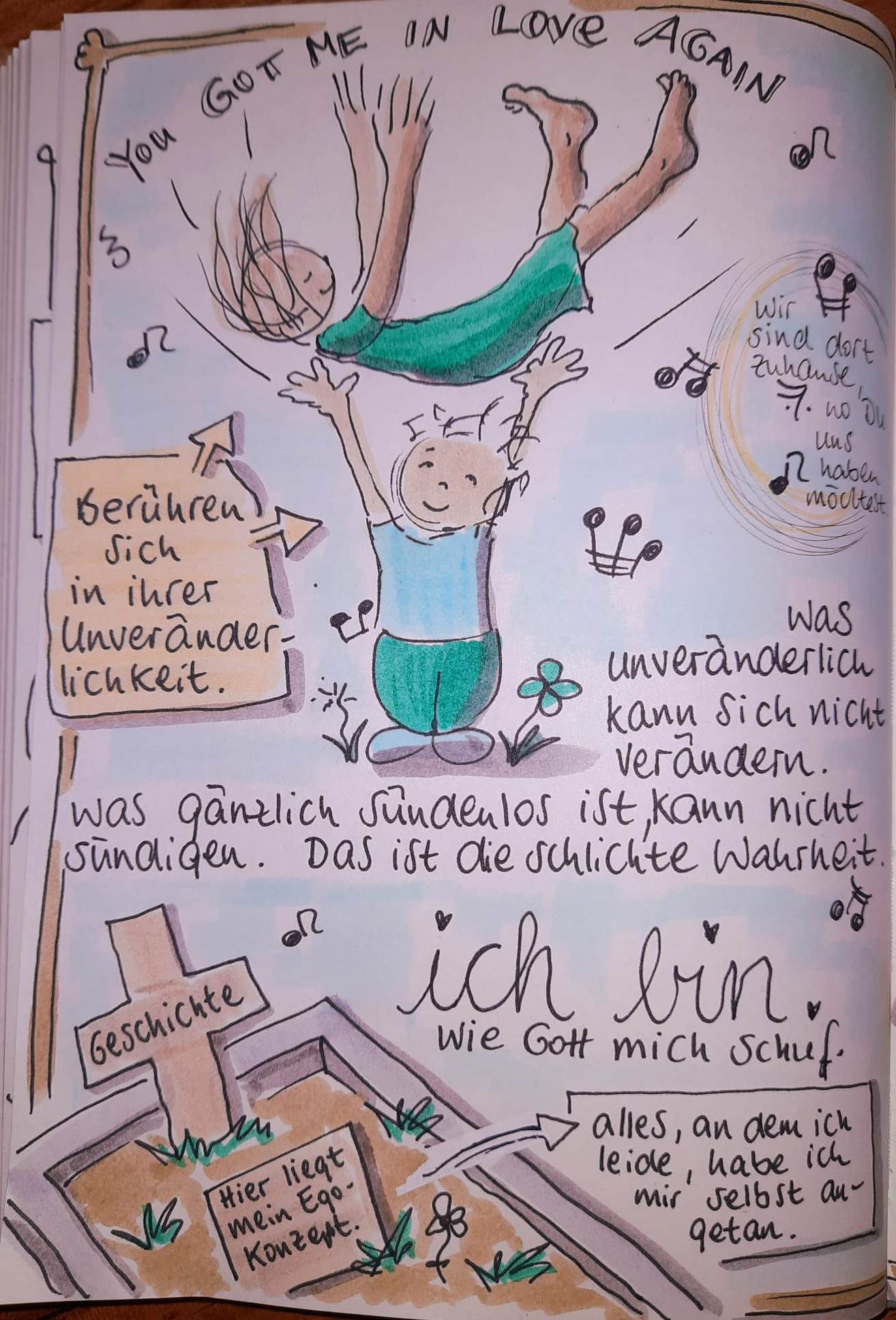 Das ist EinKurs in Wundern, und so – in dieser Bereitwilligkeit, nicht daran festzuhalten – werden wir ganz sanft von IHM, von CHRISTUS Selbst an der Hand geführt. Und vielleicht erst einmal in dieser Wiederholungsphase von „Ah, siehst Du?! Hier ist wieder der Gedanke… Da ist es wieder zu klein. Da ist wieder Angst involviert. Siehst Du?! Hier ist Schuld projiziert.“